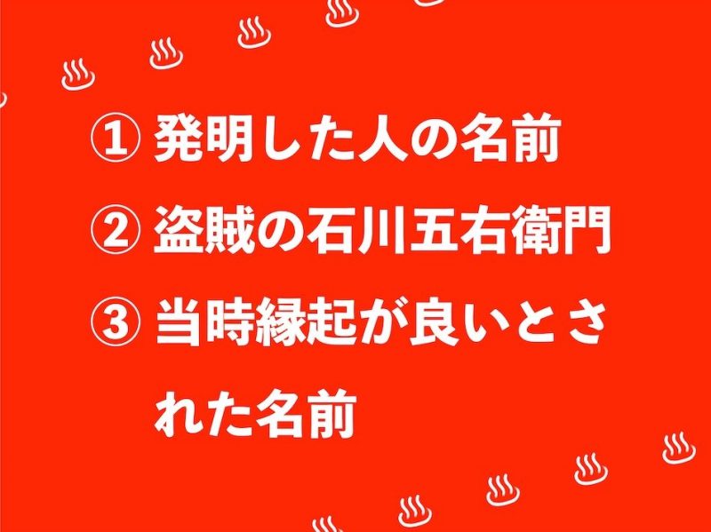 さて、そのお風呂自体に人名が付いている五右衛門風呂ですが、その名前の由来を皆さんはご存じでしょうか?