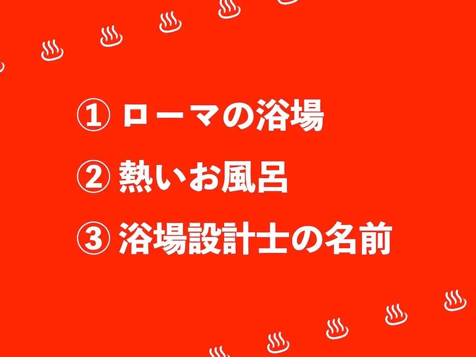 浴場の小ネタ「テルマエ・ロマエの意味をご存じ?」の答えはこちら